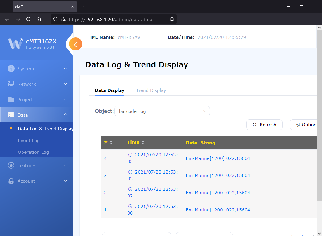 DataData Log & Trend Display (Данные » Журнал данных и отображение трендов)