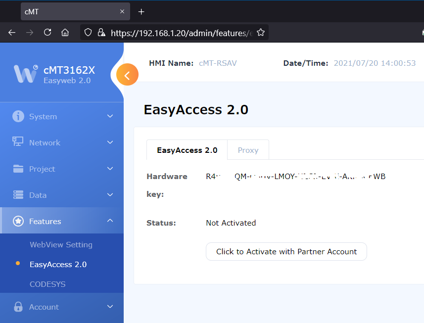 На этой странице пользователь может активировать EasyAccess 2.0 и настроить прокси-сервер.