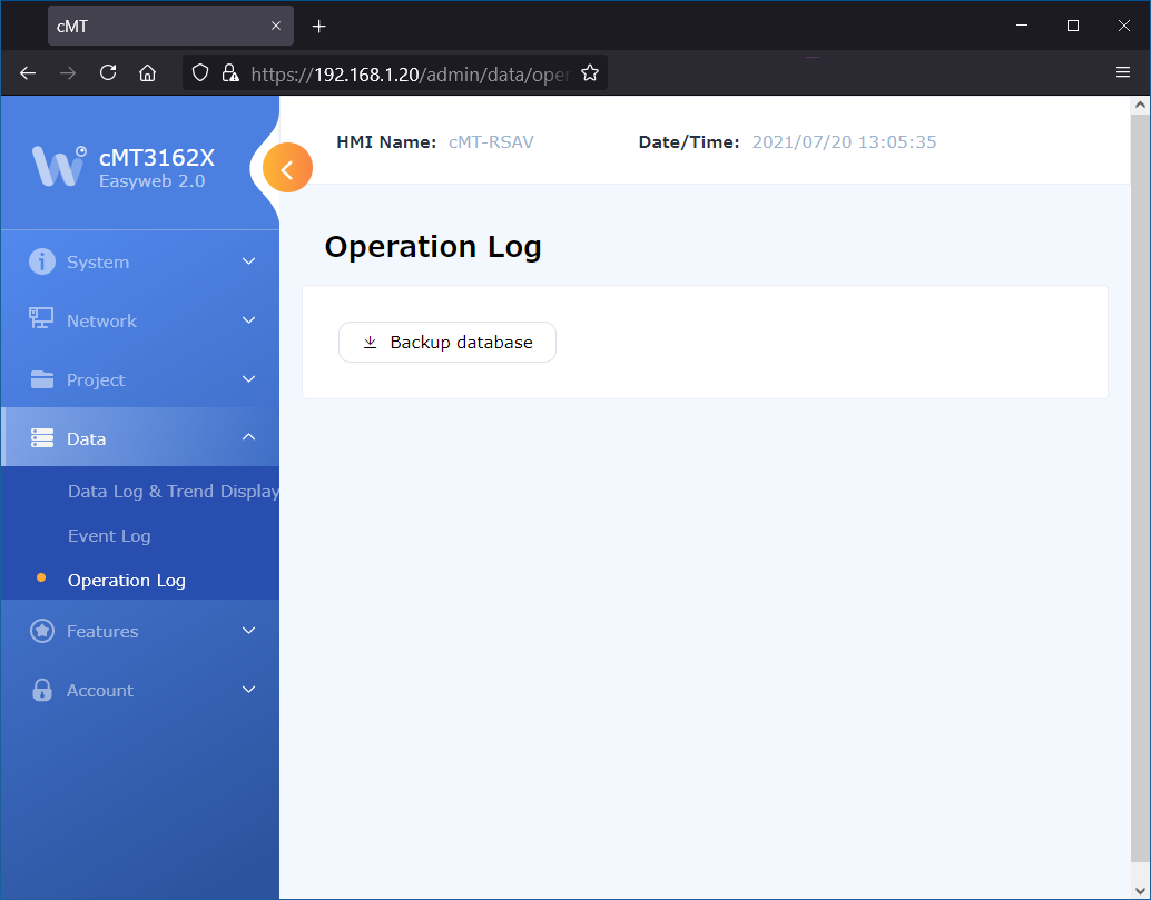 На этой странице отображаются журналы событий, а данные можно экспортировать или создать резервную копию.