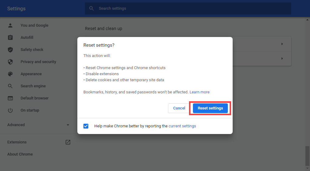 Большинство настольных веб-браузеров предоставляют возможность сброса настроек для решения серьезных проблем. Если ни одно из приведенных выше предложений или решений не помогло исправить кнопку «Назад», сделайте это сейчас.