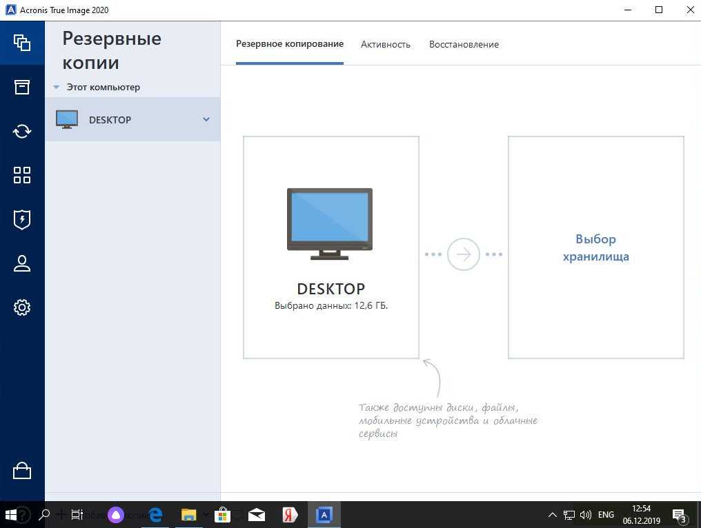 В возможности базовой версии приложения входит копирование образа диска или выбранных файлов в указанное пользователем хранилище, восстановление данных из резервной копии, клонирование дисковых разделов и защита от шифровальщиков (приложение отслеживает запущенные в системе процессы и предупреждает пользователя при попытке шифрования файлов: потенциально опасный процесс пользователю предложат заблокировать). Покупателям подписки становится также доступно облачное хранилище на серверах Acronis объемом 250 Гбайт (или 1 Тбайт, в зависимости от того, насколько ты готов раскошелиться).
