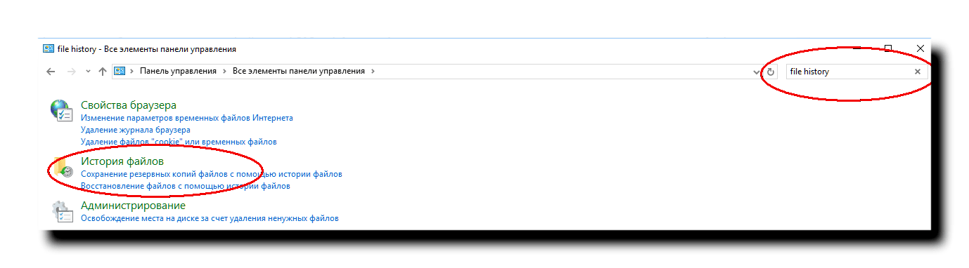 Windows 8: Выберите история файлов (file history) на начальном экране панели управления Windows 8.