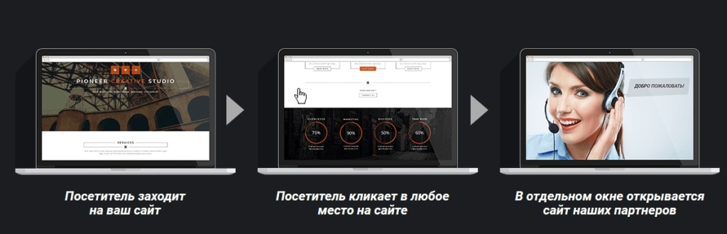 Кликандер – один из видов активной и навязчивой рекламы. Суть его в том, что при первом нажатии на любую область страницы в новой вкладке открывается сайт рекламодателя. Это эффективный и популярный способ привлечения трафика на целевой сайт.