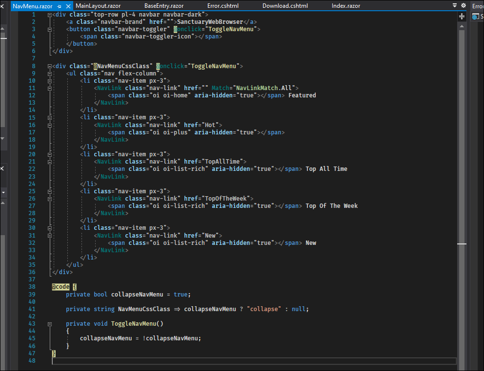 Между тем, с помощью Razor вы можете создавать более оптимизированные страницы или компоненты с интегрированным кодом на самой странице. Это работает лучше, когда страницы проще, но обе доступны в качестве вариантов для использования.