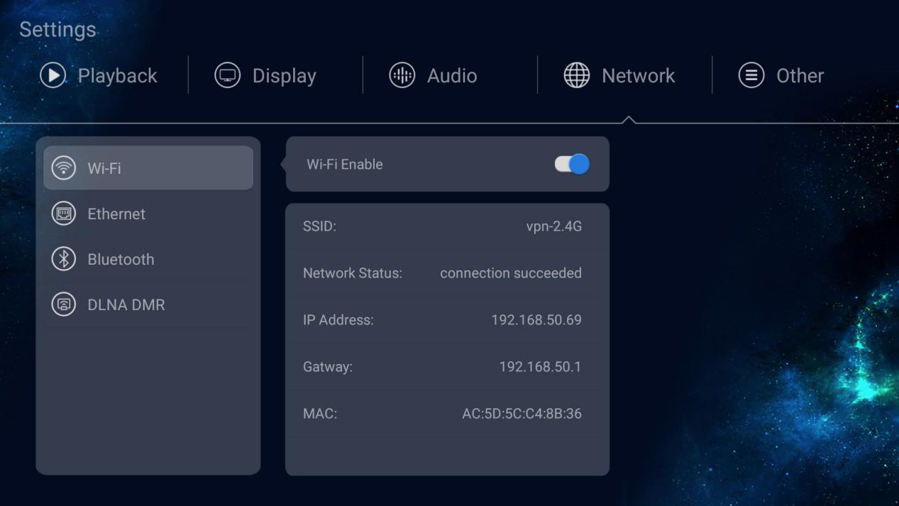 1. Turn on Z9X device and make sure WiFi/Ethernet is connected. Network could be set by Quick Settings> Network>WiFi/Ethernet.