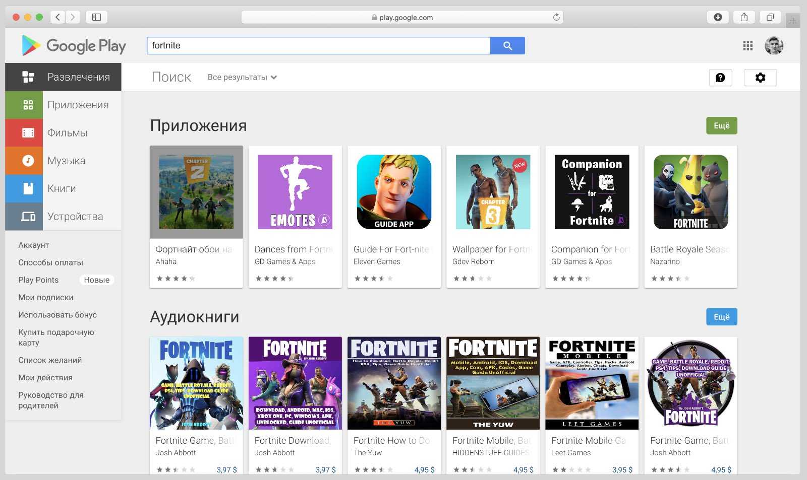 Fortnite: Королевская битва раньше пользовались огромным успехом как в Apple App Store, так и в Google Play Store. Но после обновления, которое позволило игрокам совершать покупки в приложениях непосредственно в Epic, Apple и Google сразу загрузили игру из своих магазинов. Выполните поиск, и официальной игры нет в списке. Вместо этого вы найдете неофициальные клоны в магазине Google Play.