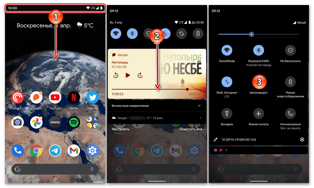 - Проведите пальцем от верхней границы экрана вниз, чтобы отобразить содержимое шторки. По необходимости выполните дополнительный свайп, чтобы полностью ее развернуть и увидеть все доступные элементы.