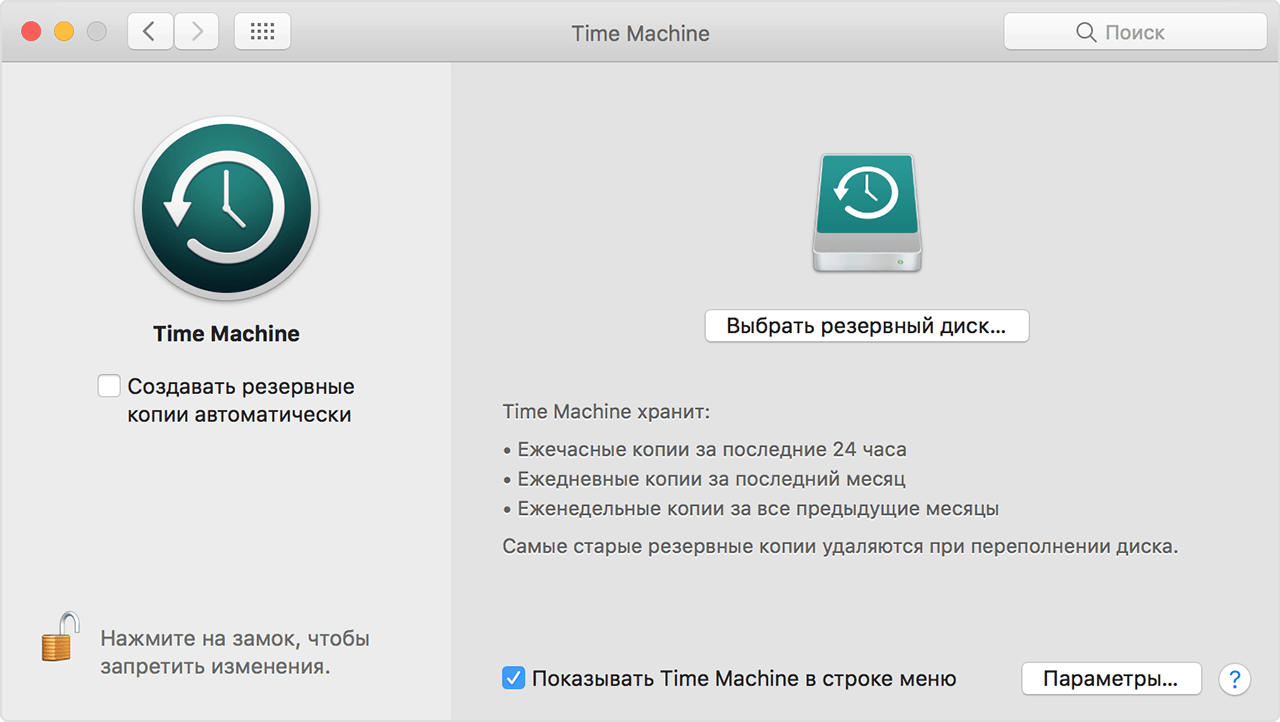 Резервное копирование данных с помощью Time Machine