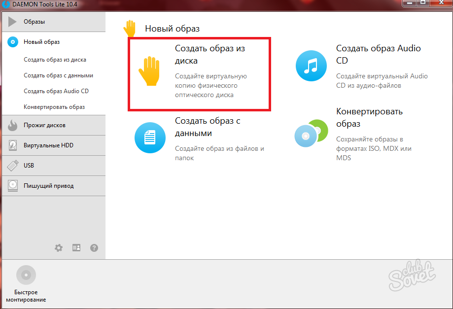 В меню «Новый образ» вы можете увидеть поле «Создать образ из диска». Это как раз тот метод, который вам пригодится в такой ситуации.