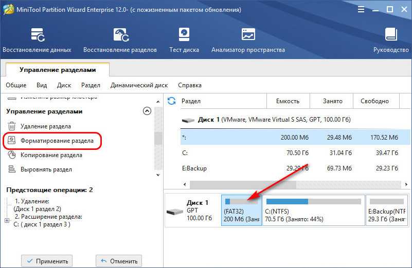 Если у вас нет MSR-раздела, соответственно, все эти действия выполнять не нужно. Но далее действия будут одинаковыми для всех EFI-систем. Кликаем на визуальной карте диска загрузочный раздел. На операционной панели выбираем «Форматирование раздела».