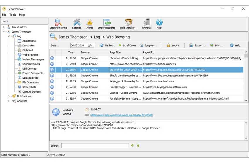 Настройка решения и мониторинг за компьютерами сотрудников также включает фиксирование и систематизацию данных по рабочей эффективности с функцией time-treker (хотя и достаточно ограниченного по функционалу). Сводки, сохраняемые в сетевые папки или отправляемые через ftp на электронную почту руководителю, не дают комплексного представления о работе отделов и компании в целом. Поэтому данное решение для отслеживания активности и работы на компьютере не подойдет крупным компаниям с серьезным подходом.