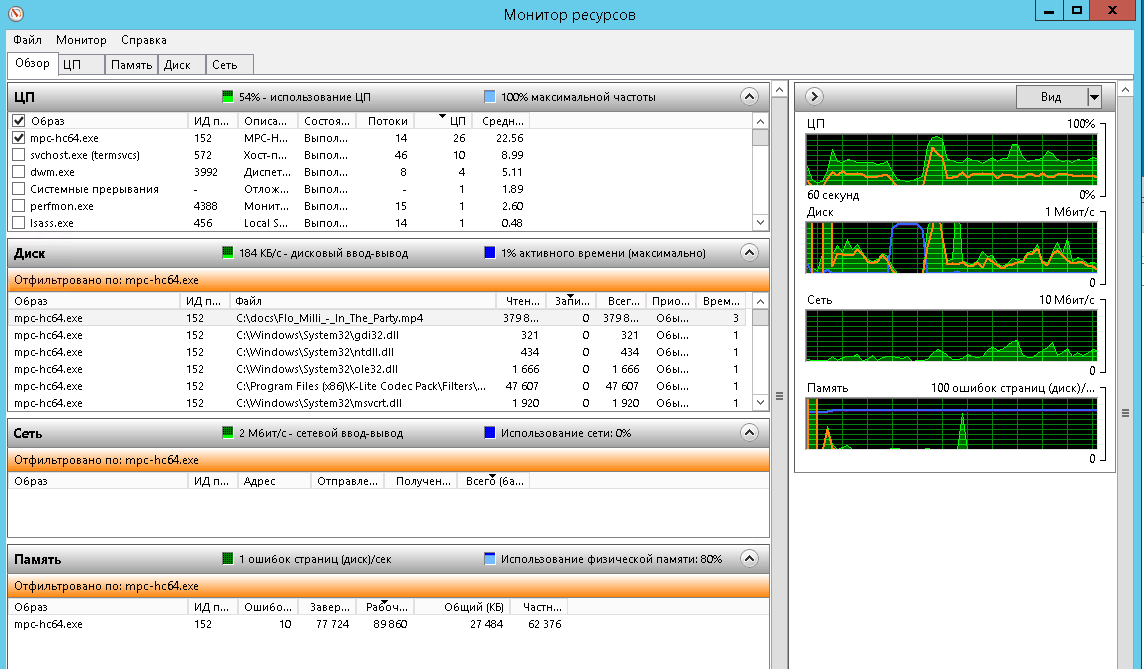 Рассмотрим некоторые полезные возможности монитора ресурсов на Windows.