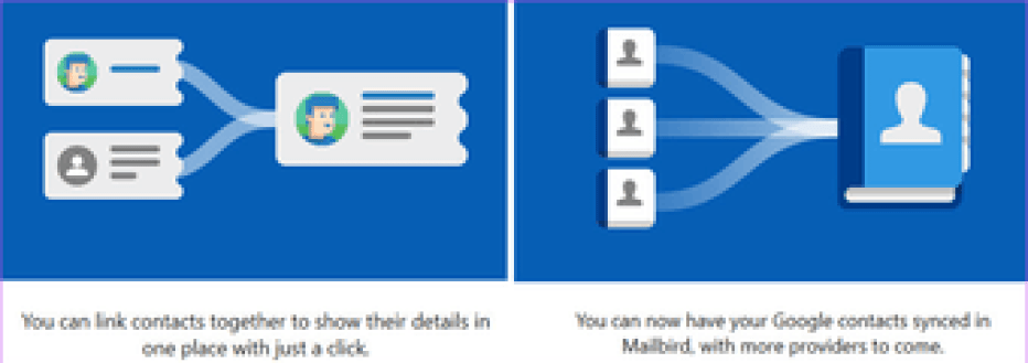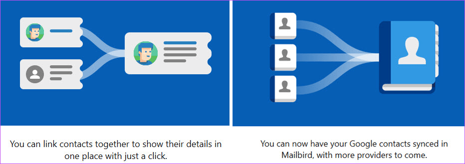 Когда дело доходит до контактов, Mailbird лидирует со своим классным менеджером контактов, все благодаря красивому пользовательскому интерфейсу. Все, что вам нужно сделать, это выбрать учетную запись, и контакты будут синхронизированы автоматически. Кроме того, вы можете связать свою учетную запись Facebook, чтобы синхронизировать изображение профиля контакта. Более того, вы также можете увидеть все электронные письма, отправленные контактом, когда вы нажимаете на изображение отправителя.