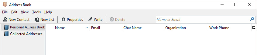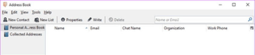 Менеджер контактов Thunderbird соответственно называется Адресной книгой и имеет два варианта: Личная адресная книга и Собранные адреса.