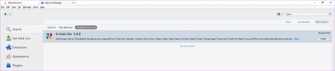 С другой стороны, Thunderbird позволяет интегрировать плагины и надстройки, чтобы добавить дополнительную функциональность к повседневной работе с почтой. Чтобы интегрировать Google Документы или Календарь, вам нужно добавить G-Hub Lite.
