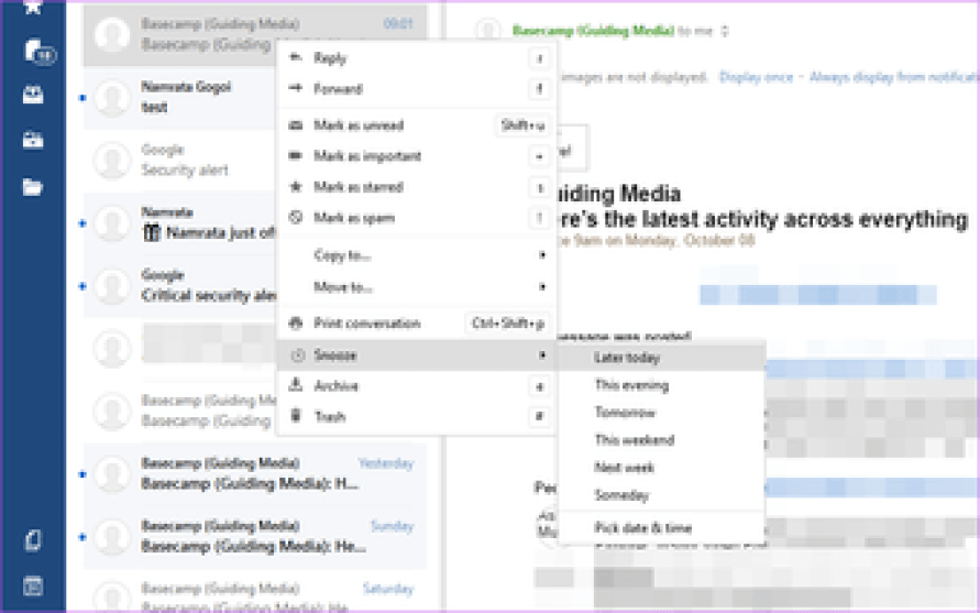 Еще одна полезная функция Mailbird — опция «Отложить», которая позволяет вам перенести электронную почту на более позднее время. Когда наступит подходящее время, электронное письмо появится в почтовом ящике как новое. Это позволяет очень легко проверять электронные письма и отвечать на них позже, особенно если вы привыкли отвечать на электронные письма партиями.