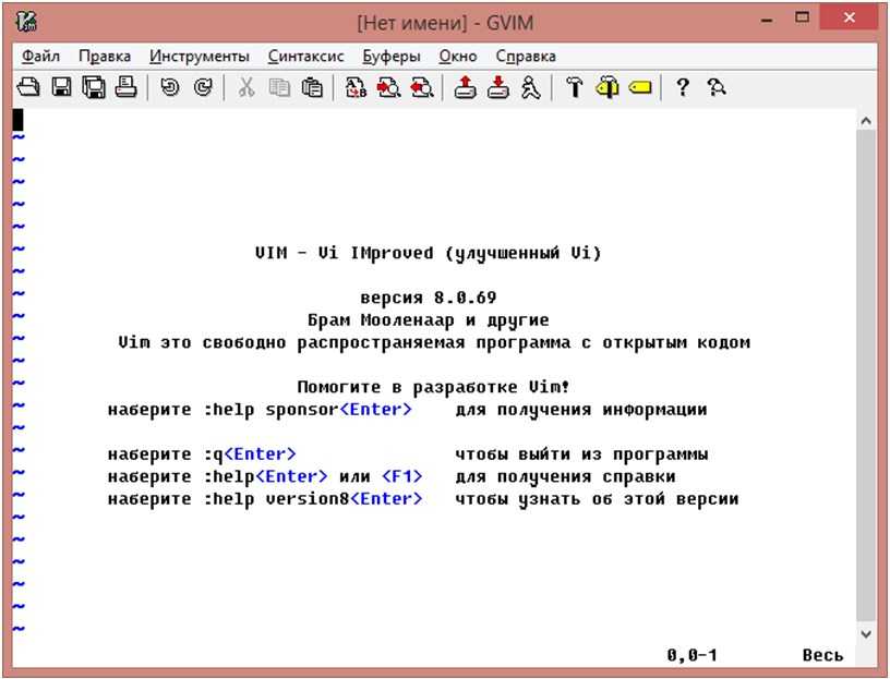 Vim – это профессиональный свободный текстовый редактор, который берет свое начало от семейства старейших юниксовых редакторов. Первый выпуск Vim состоялся 2 ноября, 91 года. Известен, как инструмент для профессиональных программистов, который дает колоссальные возможности по автоматизации работы. Стандартный визуальный интерфейс Vim – консольный, однако существует модификация Gvim, работающая через оконный графический интерфейс.