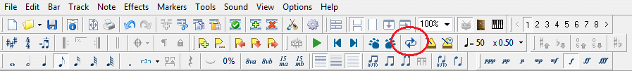 Бывает такое, что в песне имеется сложное или непонятное место, которое приходится несколько раз переигрывать, чтобы понять его. Для таких случаев существует функция – зацикливание тактов. В данном случае выбранные такты будут играть бесконечно и циклично, пока вы не нажмёте «паузу».