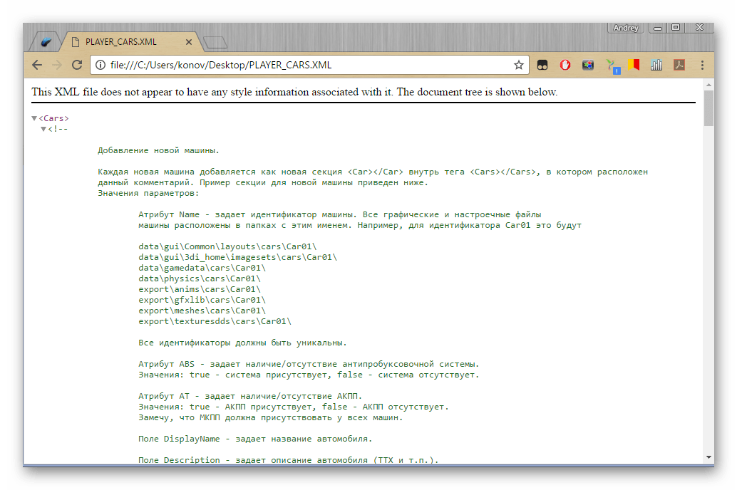Для открытия XML-файла достаточно лишь открыть браузер и перенести документ прямо в окно программы. Теперь можно наслаждаться работой и чтением файла в формате XML в удобном виде.