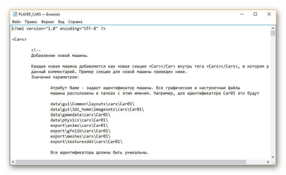 Теперь файл доступен не только для чтения, но и для редактирования. Если же в настройках еще выбрать синтаксис для XML, то можно спокойно редактировать файл со всеми синтаксическими правилами языка.