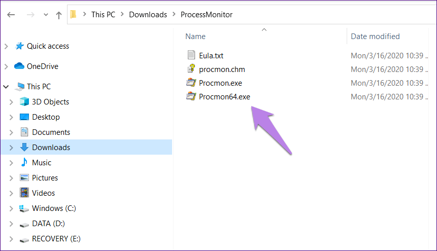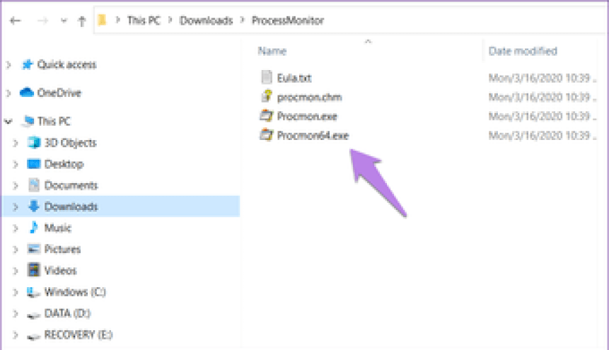 Шаг 2: Разархивируйте его и щелкните файл Procmon, чтобы открыть его.