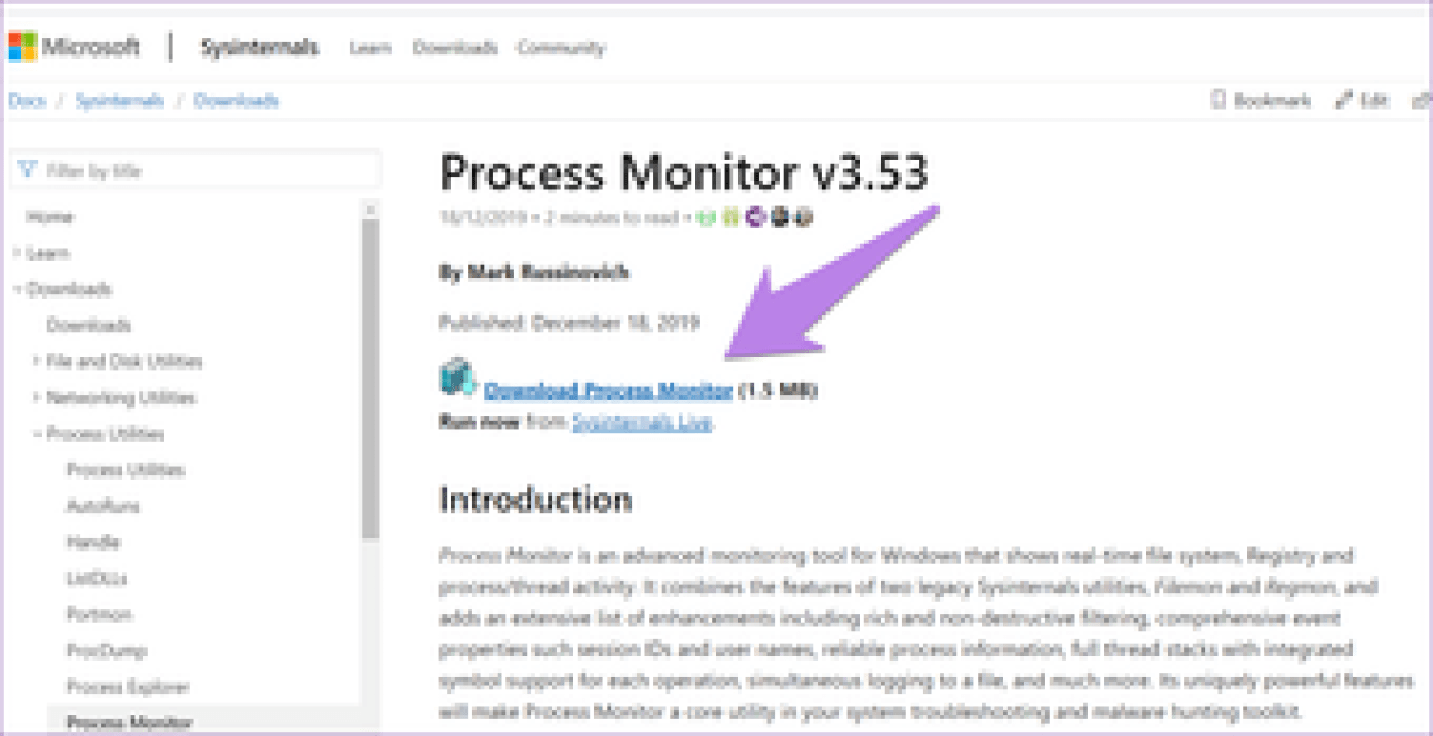 Шаг 1: Загрузите инструмент Process Monitor по приведенной ниже ссылке.