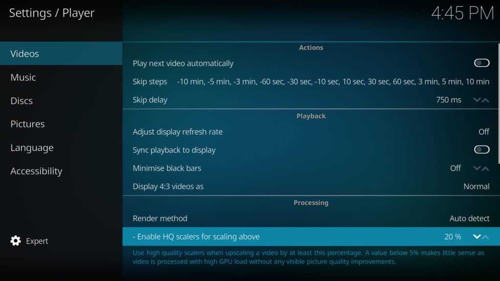 В Kodi вы можете испытывать заикание видео и падение кадров из-за того, что Kodi автоматически масштабирует видеопотоки низкого качества в видео более высокого качества. Это делается с помощью процесса, известного как масштабирование видео.