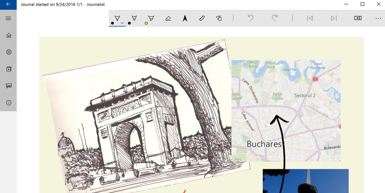 Journalist — это приложение для ведения журнала только для Windows, которое поставляется с инструментом для рисования. Людям, которые любят рисовать или зарисовывать свои эмоции и чувства на бумаге, это понравится. Что еще? Вы можете объединить до 4 работ, чтобы создать своего рода прокручиваемое видео. Он поддерживает различные форматы видео и GIF. Добавить текст, изображения, аудио и видео очень просто. Данные сохраняются в OneDrive.