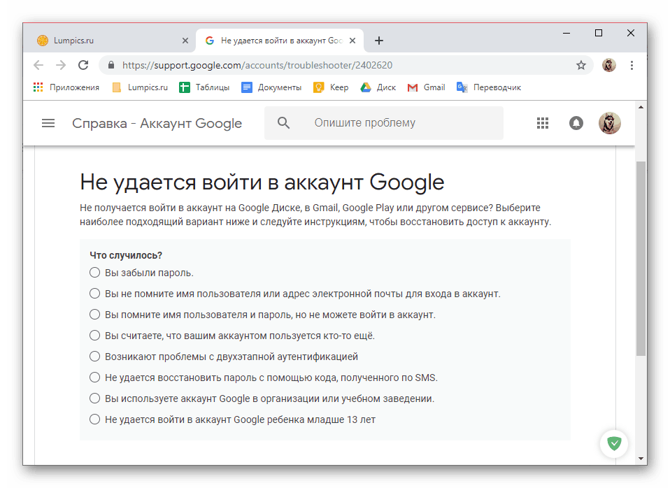 В том случае, если попытка входа в один или несколько сервисов Google через браузер на компьютере не увенчалась успехом, следует пройти процедуру восстановления доступа. После ее успешного завершения, с большой долей вероятности, будет также устранена и рассматриваемая нами сегодня ошибка синхронизации. Для решения проблемы с авторизацией перейдите по представленной ниже ссылке и постарайтесь максимально точно ответить на все вопросы из формы.