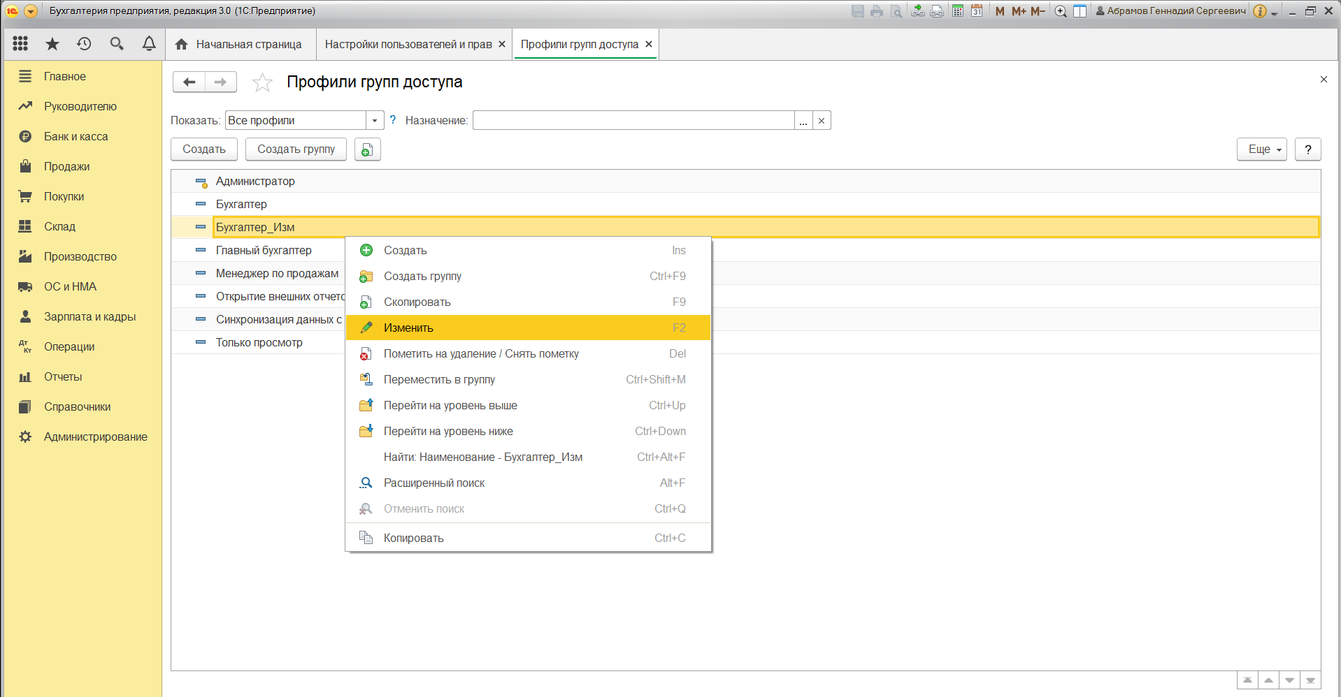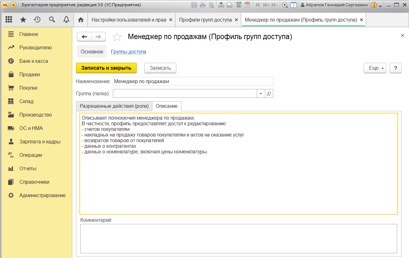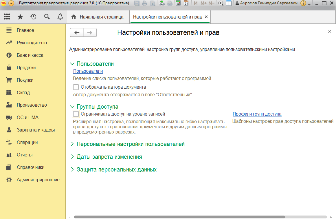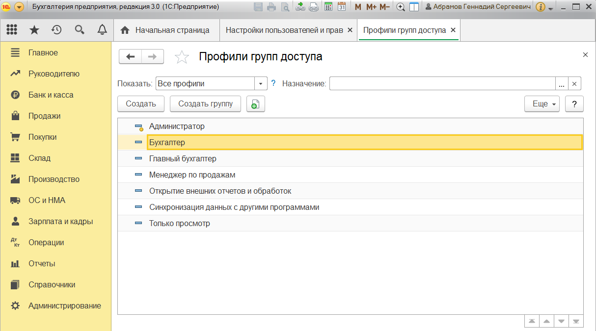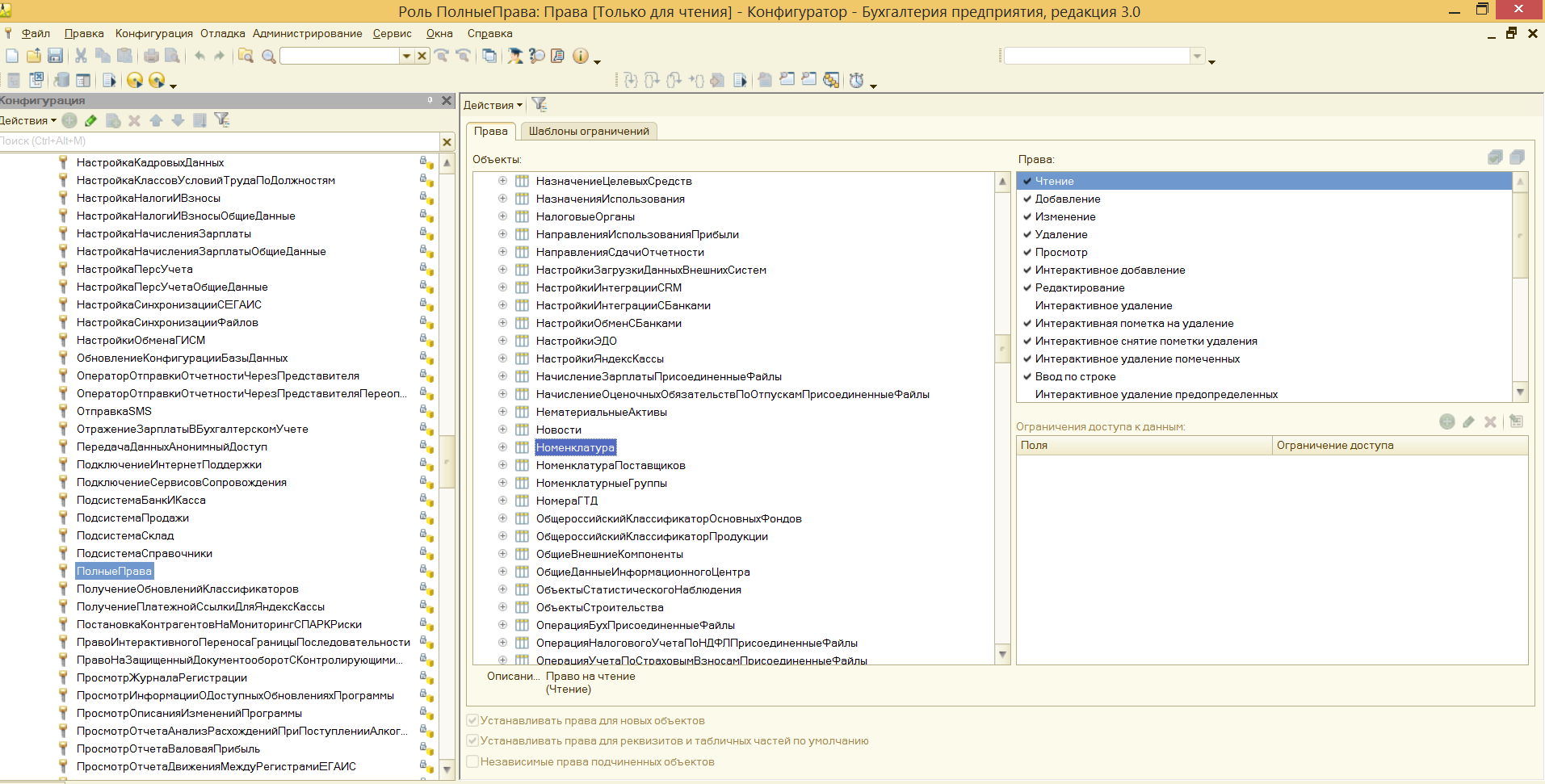 Пошаговая настройка прав доступа в 1С