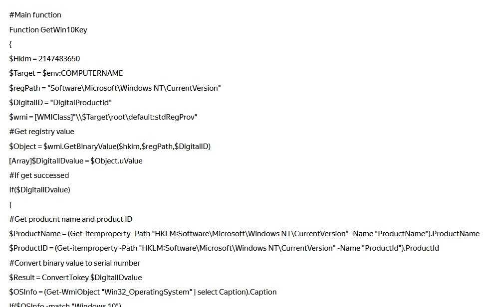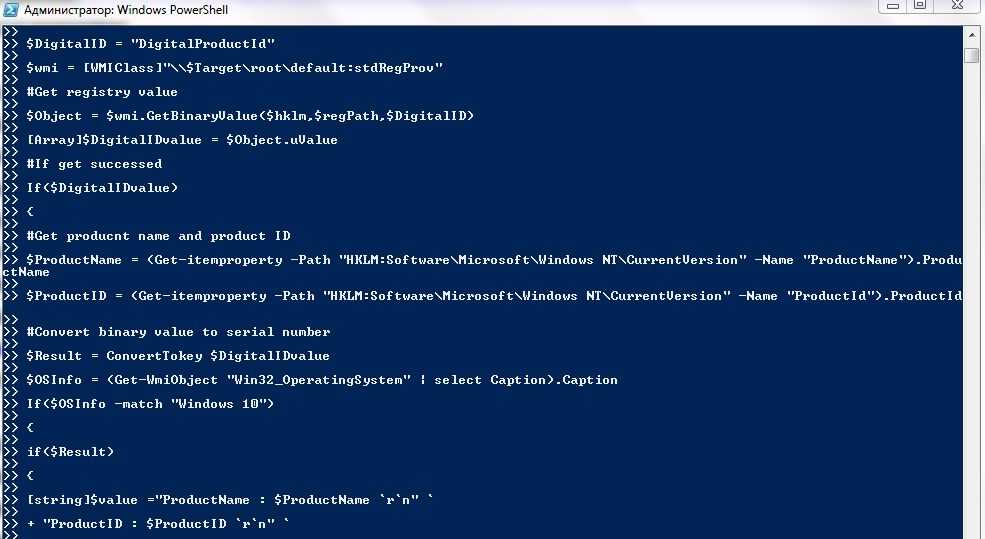 Команда для извлечения ключа из PowerShell