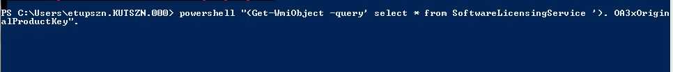 powershell «(Get-WmiObject -query ‘select * from SoftwareLicensingService’). OA3xOriginalProductKey» и удар Enter.