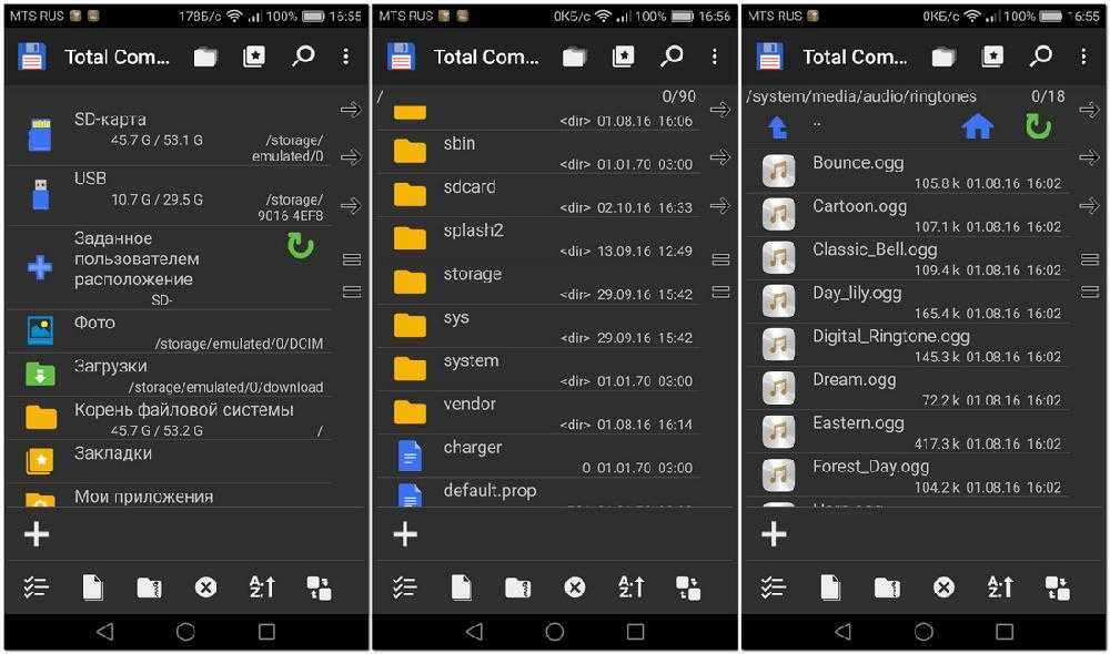 Второй способ тоже достаточно простой. Если у вас телефон на ОС Андроид, скачайте программу Total Commander из Play market. Установив ее на телефон, откройте приложение. Вы увидите множество папок с разными названиями, среди них будет папка «Корень файловой системы». Это то, что вам нужно. Приложение выполняет полезную роль сортировщика файлов, их удаления. С его помощью можно нормализовать работу телефона и почистить его память.