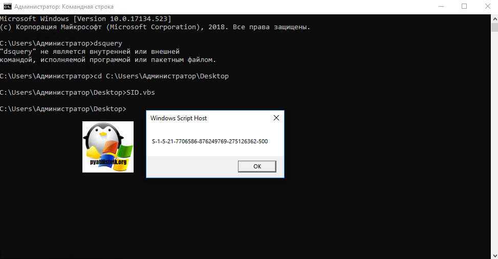 Работа с утилитой PsGetsid.exe