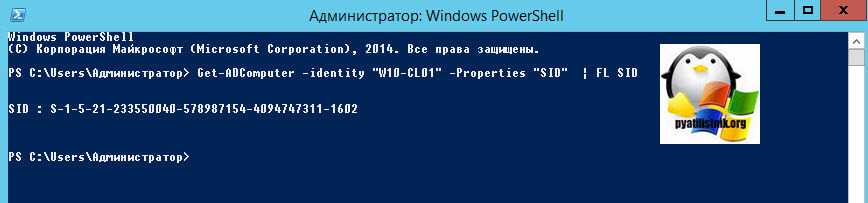 тут так же будет запрошен SID учетной записи «Администратор». Если компьютер доменный, то нам поможет командлет Get-ADComputer. Запускаем оснастку PowerShell и вводим команду: