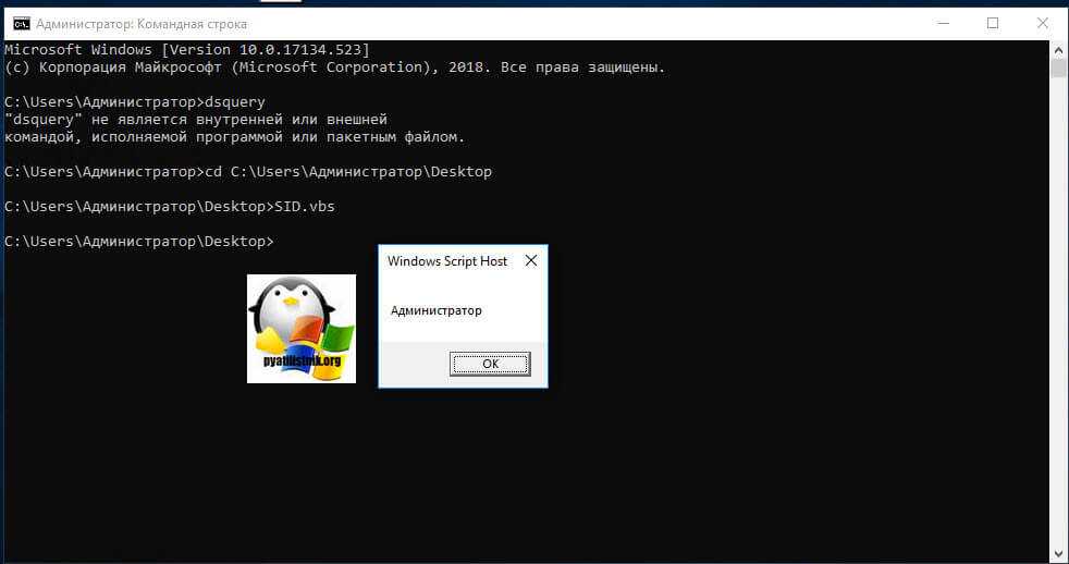 - Второй метод, это использование командной строки, с помощью утилиты dsquery. Получать мы таким методом будем доменный SID у сервера или рабочей станции: