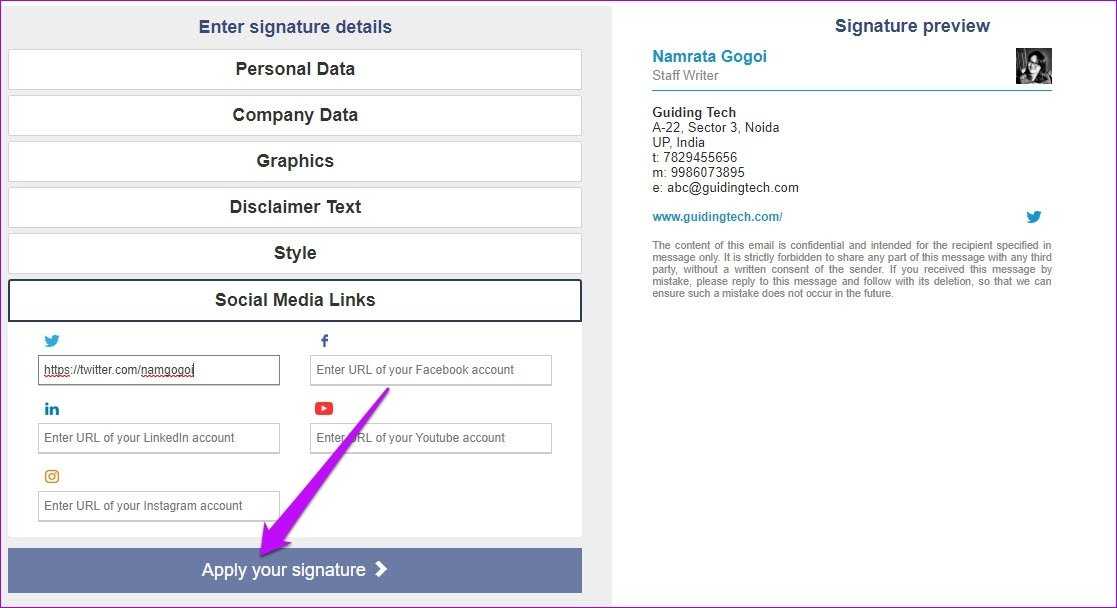 Самое приятное в этом методе — это то, что это простой сервис и вам не нужно входить в систему. Вам нужно выбрать стиль, добавить свои данные, и вы готовы идти дальше.