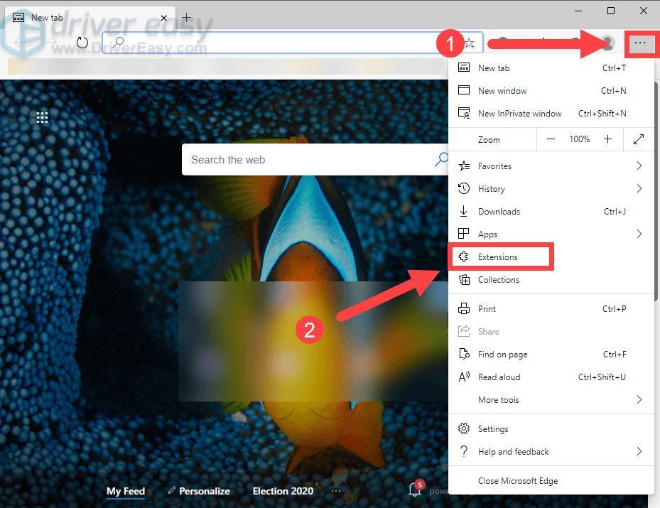 1) В правом верхнем углу нажмите на три точки значок и выберите Расширения .