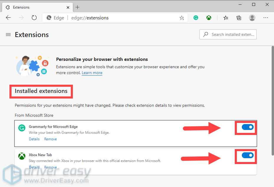 2) Под Установленные расширения раздел, щелкните синий тумблер чтобы он стал серым.