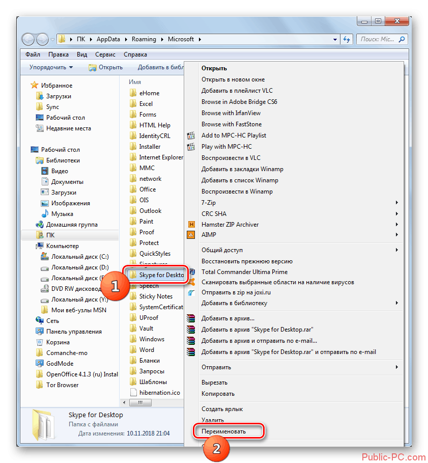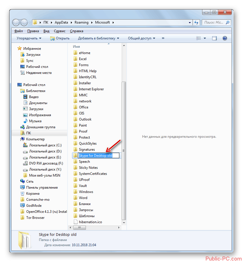 - Найти и вырезать папку Skype for desktop.
