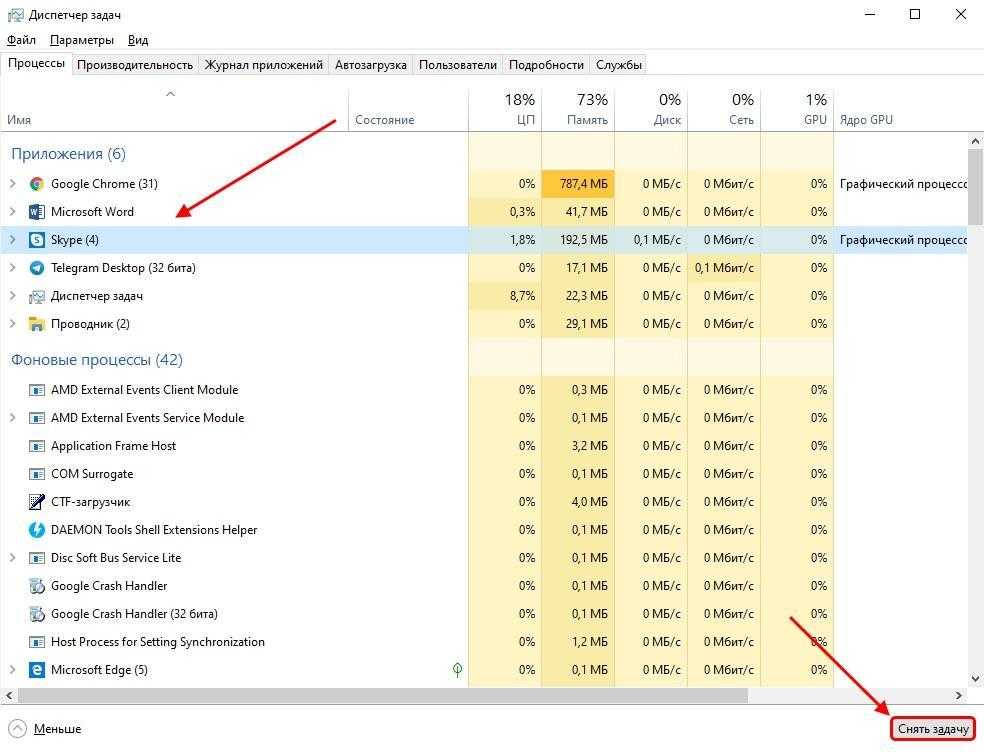 Через Диспетчер задач