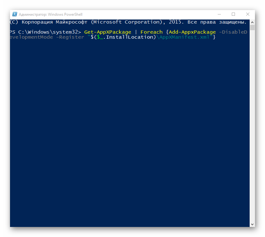 Решить проблему можно также с помощью перерегистрации приложений, созданной для того, чтобы исправить возможные проблемы с правами взаимодействия программы и ОС. Этот способ по новой заносит данные о приложениях в реестр.