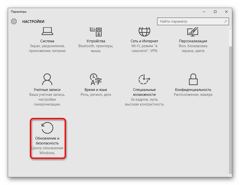 - В «Параметрах» найдите раздел «Обновление и безопасность».