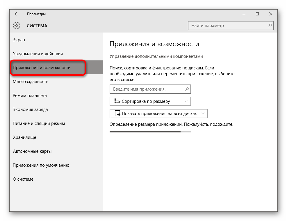 - Щёлкните по разделу «Система» и перейдите во вкладку «Приложения и возможности».
