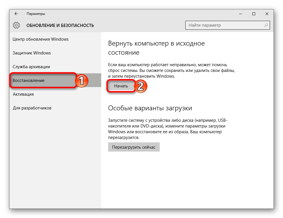 Если ни один из способов не помог, то попробуйте сбросить настройки ОС.