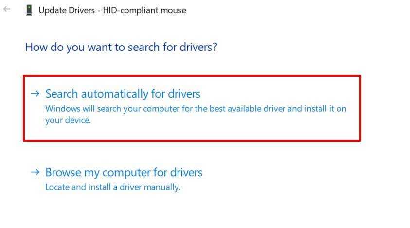 Выберите Автоматический поиск драйверов на следующей странице и следуйте подсказкам, чтобы обновить драйвер мыши.