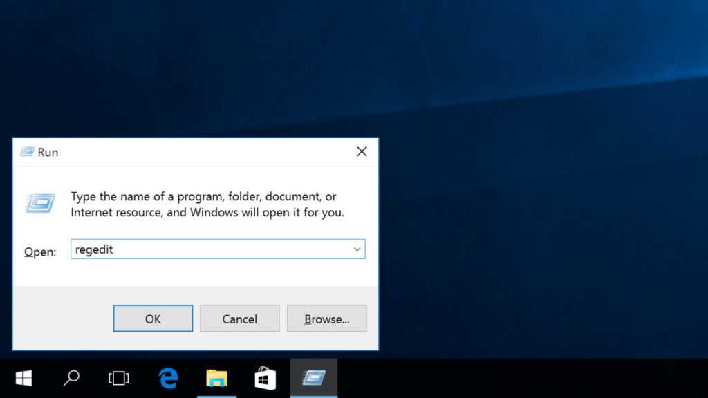 - На «здоровом» компьютере откройте редактор реестра, нажав WIN+R и записав команду: regedit.