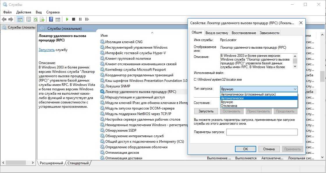 Запускаем необходимую службу Windows 10 и редактируем реестр