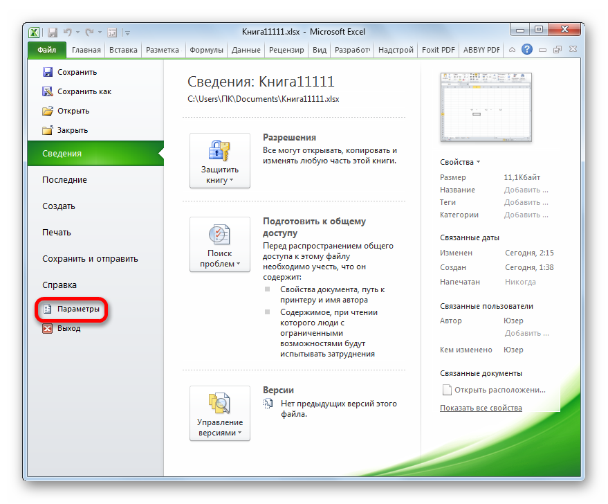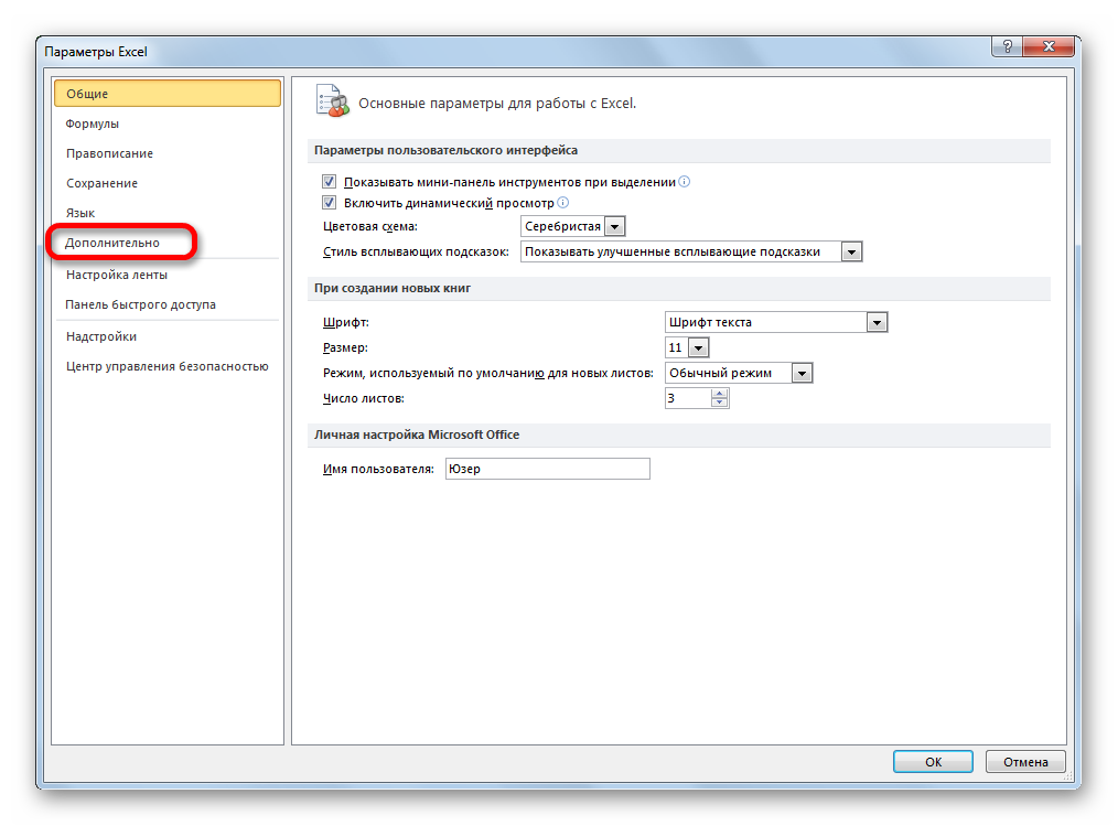 На вкладке Файл выберите команду Параметры. Если вы используете Excel 2007, нажмите кнопку Microsoft Office
