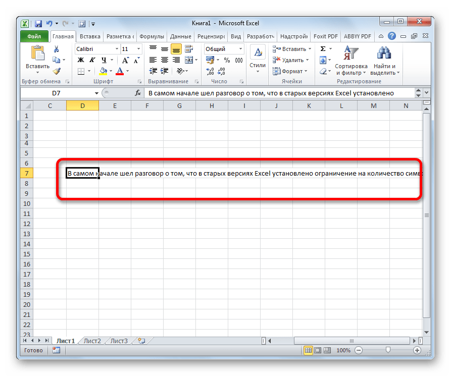 Теперь ограничение снято и в ячейке будет корректно отображаться любое количество символов.